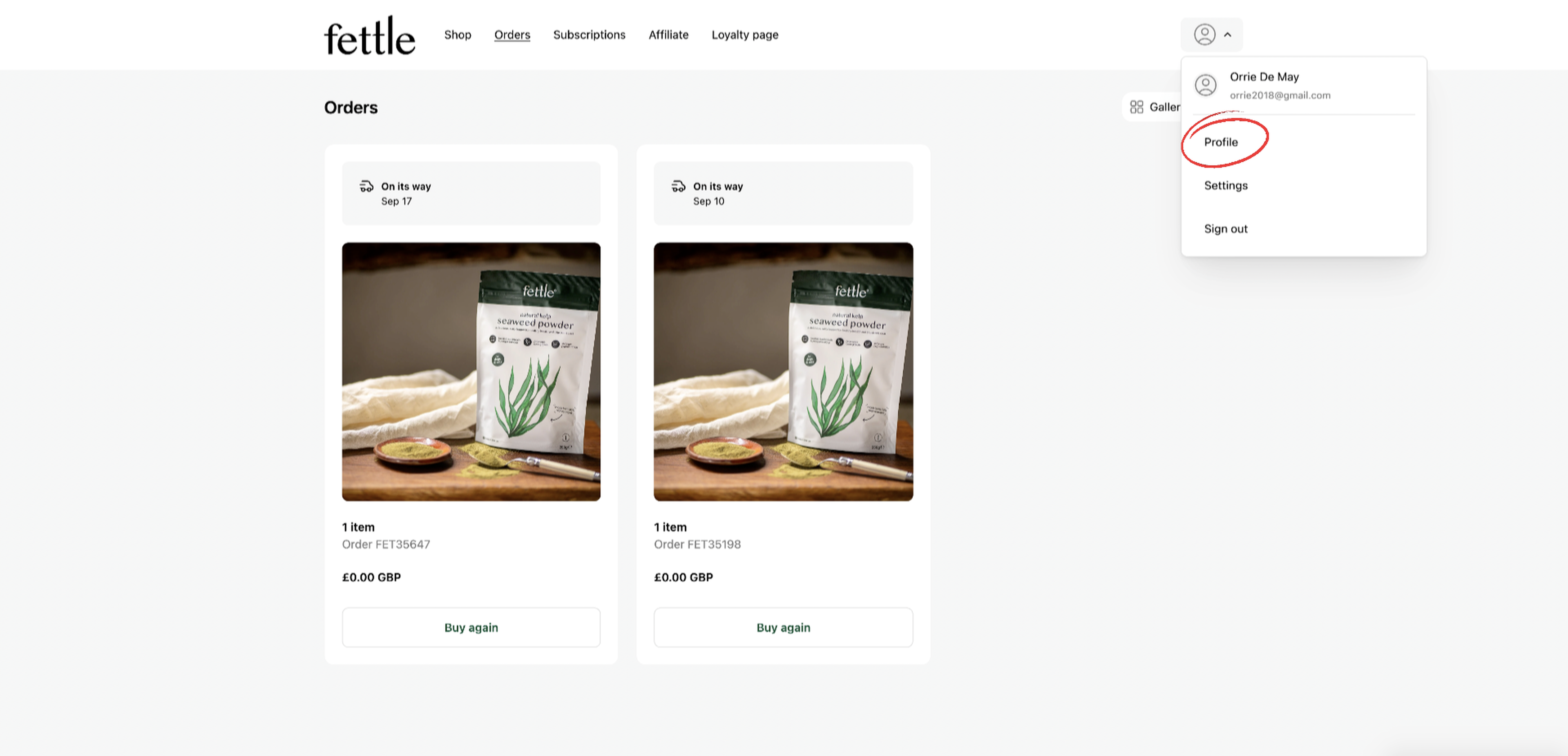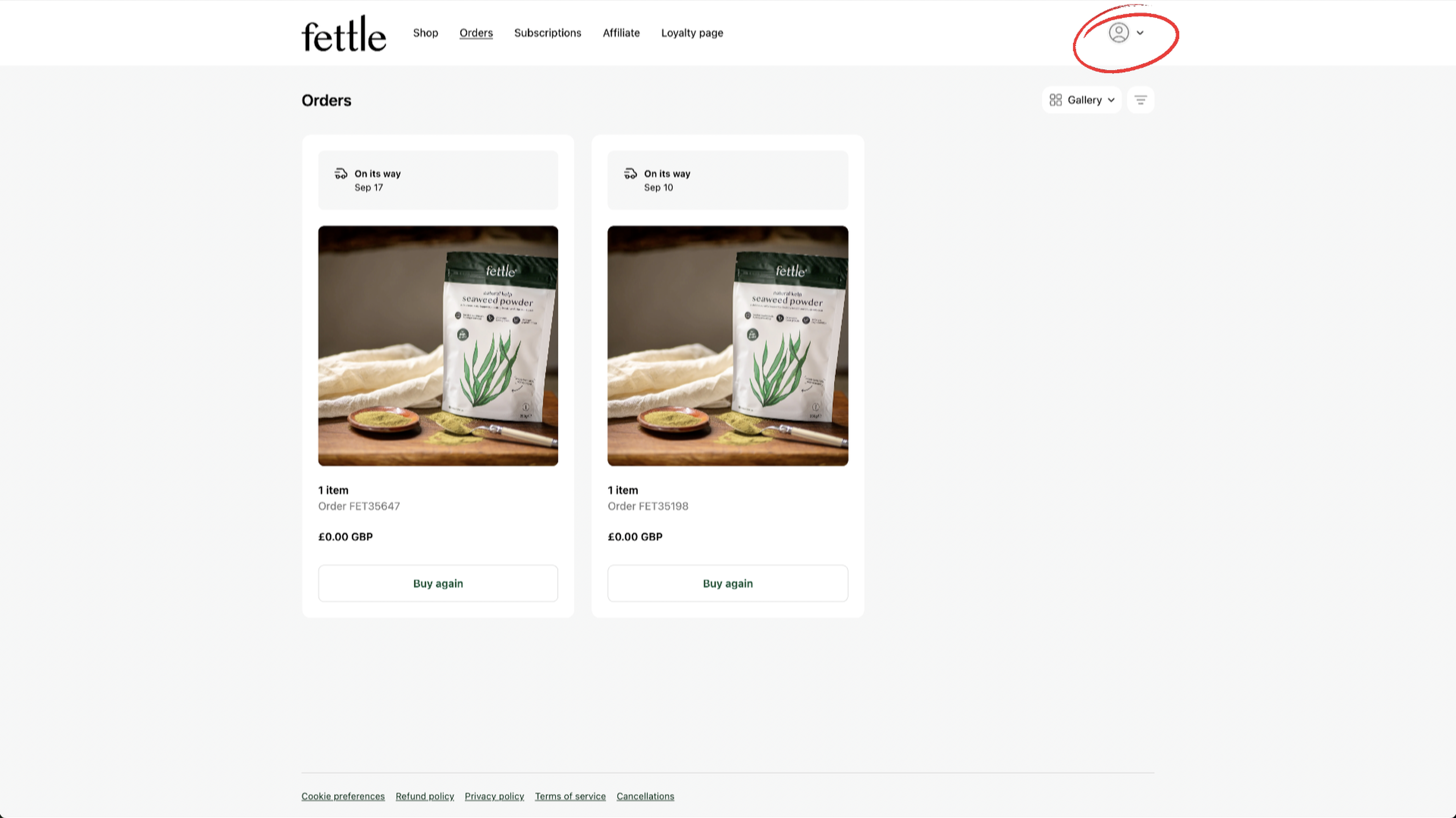 Head to fettlepets.com and click the account icon in the top right corner of the page.
